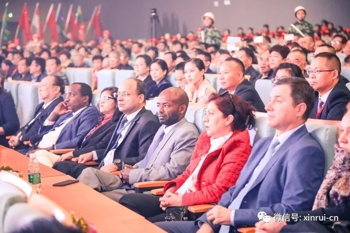 Ghimireharishchandra、埃塞俄比亞駐華使館參贊Getachew Uta分別上臺為獲得首屆“一帶一路”國際蜂業健康大使榮譽稱號的星瑞國際健康產業集團市場部人員頒獎。