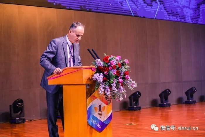 白俄羅斯駐華使館參贊Sergei VERGEICHIK作了題為《“一帶一路”國際蜂業合作的創新與發展》的演講。他表示,中國共產黨第十九次全國代表大會召開是中國人民的喜事,為中國加油!演講深挖中俄、中歐“絲路”淵源,展望國際蜂業創新與發展,倡議加強蜂業商貿往來。最后,還不忘推廣白俄羅斯的蜂蜜,引得場下掌聲雷動。